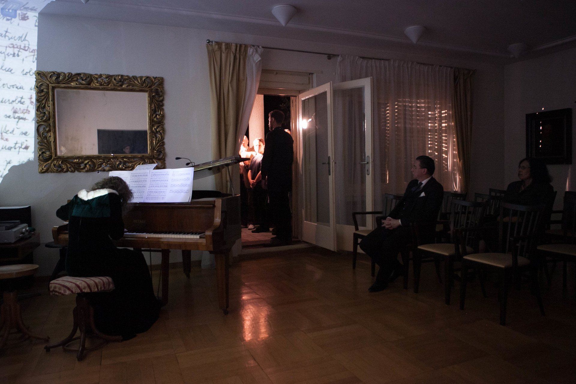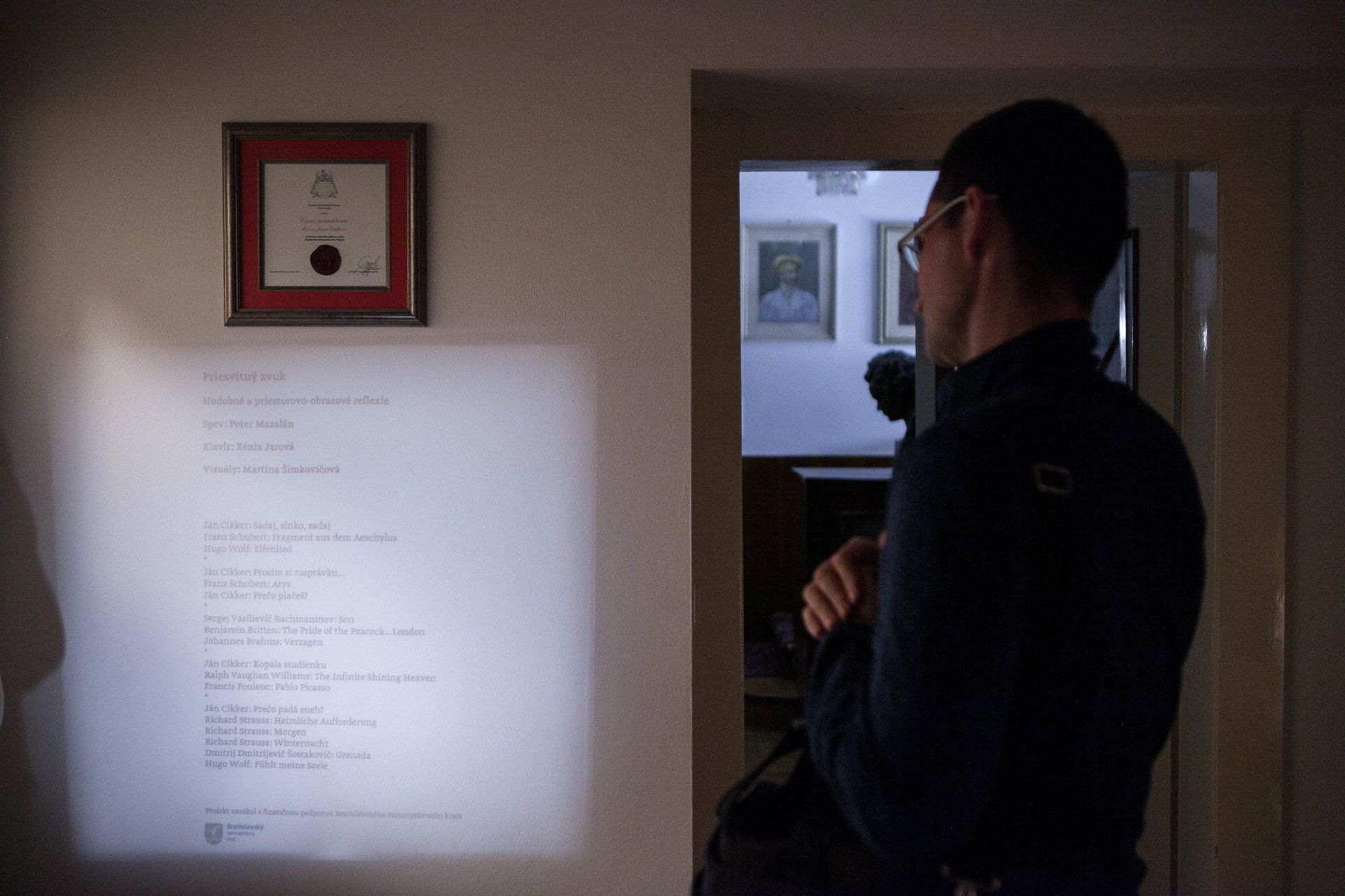 Translucent Sound deals with personal, living spaces. With light and musical selection which "shine through" the intimate space, heterogenous musical, spatial and intellectual concepts/compositions are created. The first show took place in the house and the garden of the famous Slovak composer of the 20th century Ján Cikker. The villa serves now as a museum. The performance used a diversity of music repertoire: Ján Cikker, Franz Schubert, Francis Poulenc, Benjamin Britten, Johannes Brahms, Dmitri Shostakovich...